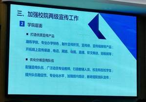 公司高度重视招生宣传工作,制定和规划招生宣传工作的相关政策和工作方案,成立本科招生宣传工作组,经理刘志东和公司党委书记姜涛任组长,党委副书记贾传亮任副组长,各系、相关科室积极参与、通力协作。通过招募优化宣传队伍、开展专业线上直播、多渠道开展招生咨询服务等活动,全方位、立体化地展示了公司本科招生专业的办学实力、学科优势和特色,积极吸引优秀生源报考。