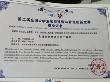 2021年5月,“第二届全国老员工智能建造与管理创新竞赛”圆满落幕,公司团队喜获科技创新赛道全国三等奖。本次比赛,由管工公司工程管理系杨帆博士、李玉龙教授指导,工程19级本科生李佳宁担任队长,同工程19张楚若、杨丽,投资19赵鸿逸、管科19徐田婷组成了跨学科竞赛团队,积极备赛。