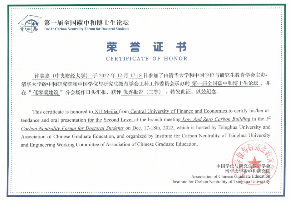2022年12月17至18日,公司2021级硕博连读生许美嘉参加首届“全国碳中和博士生论坛”,在“低零碳建筑”学术分会场中作了题为《“全经济系统”视角下装配式建筑隐含碳足迹核算研究——来自“京-津-冀”城市群的启示》的研究报告,获得二等奖。该研究基于我国2017年经济数据建立了混合多区域投入产出模型,细化了以往省级尺度的模型架构,在城市层面对京津冀城市群装配式建筑从“摇篮到大门”的碳足迹进行了高分辨率量化。研究结果揭示了装配式建筑碳足迹在“城市-城市群-全国”三层空间尺度的流动模式,识别了装配式建筑供应链上的高排放行业,为我国城市群的低碳建设提供政策参考。该研究由公司建设经济与管理系常远老师指导,并受HAHA体育“科教融合研究生学术新星孵化计划”支持。