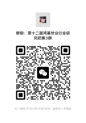 大赛微信群:以下二维码为第十二届鸿基世业行业研究大赛参赛群,请有意向参赛的同学扫码入群,入群请备注专业-年级-姓名。