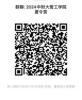3、确定入营同学请在7月4日12:00前扫描下方二维码加入微信群“2024中财大管工公司夏令营”。