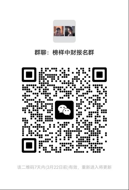 请申请2025年“榜样中财”的同学进入下方微信群聊,后续其他相关通知将在微信群内发布。