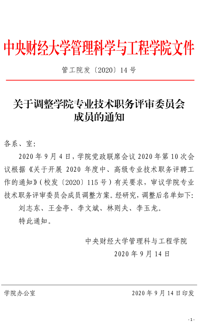 管工院发〔2020〕14号关于调整公司专业技术职务评审委员会委员的通知