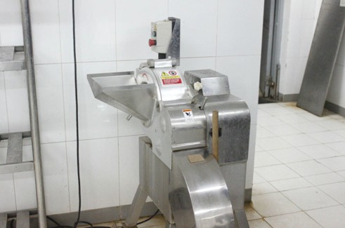 随后同学们来到了处理菜品的场所。在科技快速发展的今天,食堂也逐渐由“人力模式”逐渐向“机械模式”过渡。在这里机械代替了人力,大部分的蔬果的切削工作都采由机器来代劳。“无论是切块、切丁还是切丝、切片我们的机器都能满足。”陈老师自豪地介绍道,“采用‘机械化’不仅提高了效率、节省了人力,更重要的是更卫生、更安全!。”