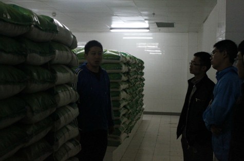 首先参观的是储存各类食材的库房。公司食堂使用的所有食材(包括调料)都是经过食品安全体系认证并由政府统一配送的,质量安全有着充足保障。众所周知,各类食材对其存储条件有着不一样的严苛要求,对此,公司食堂专门为不同食材安排了专门的库房。例如,储存大米、面粉等主食的库房干燥通风,这是为了防止发霉变质等事件发生。存放蔬菜的库房又是另一派景象,干净整洁、菜类丰富、菜种新鲜。陈老师介绍,为保证其新鲜程度,这里所有蔬菜的放置时间最多不会超过两天。