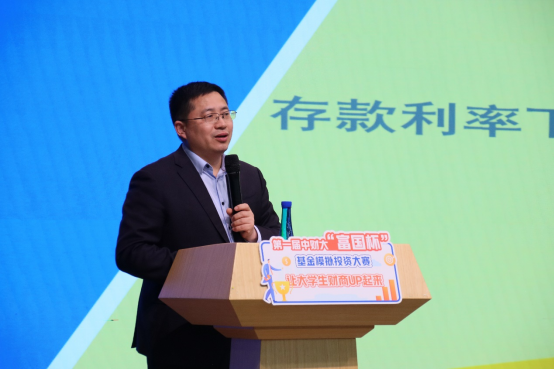 最后,富国基金管理有限公司首席策略分析师、营销管理部副总经理马全胜先生带来了《存款利率下调,理财应该如何做?》的专题讲座,以实际生活和投资案例为引入,分析了利率下行的宏观与政策背景及各类理财产品的核心定价逻辑,并细致讲解了利率下行时期的理财策略。他指出,金融是一门实践性很强的学科,希望同学们扎实学好学科知识,多多参与实践,在未来进一步结合经验与判断理性构建投资组合、感受基金实践的魅力。讲座过程中,马全胜先生和大家进行了深入地交流,现场同学踊跃提问,与嘉宾就投资观点进行思想碰撞,并分享了自己新的认知和感悟,交流氛围浓厚。