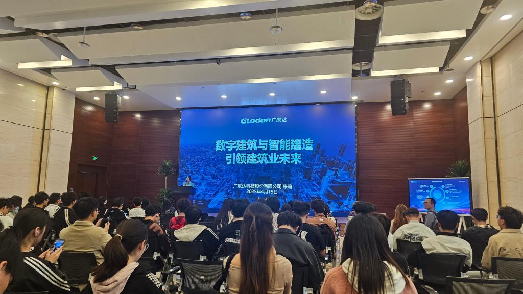 随后,师生们参加了由广联达科技股份有限公司朱莉老师主讲的专题讲座。讲座以“数字建筑与智能建造:引领建筑业未来”为主题,结合行业发展趋势和应用场景,系统阐释了智能建造在建造方式和技术能力方面的多维升级路径,如建筑机器人驱动施工方式变革、BIM技术提升项目协同效率等。讲座内容涵盖建筑项目全生命周期的智能建造解决方案,包括智能设计、智能生产、智能施工与智能运维等多个关键环节。朱莉老师深入浅出地介绍了数字建筑的核心理念、关键技术,以及智能建造在提高工程质量、降低资源消耗、保障施工安全等方面的显著优势。同时,还分享了广联达在推动建筑行业数字化转型中的实践经验与创新成果,并对未来数字建筑与智能建造的发展方向进行了展望。
