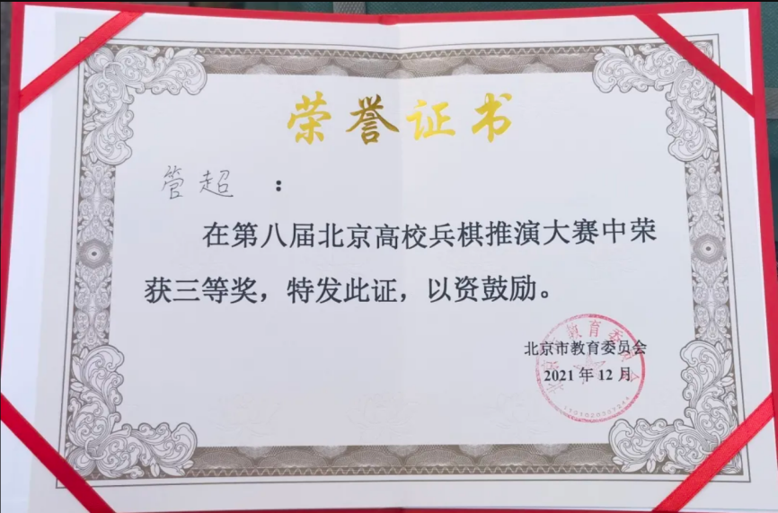 这是公司学子第二次在北京高校兵棋推演大赛取得佳绩。去年,来自投资学20的蒋舒扬、周航同学也取得了北京市三等奖的好成绩。