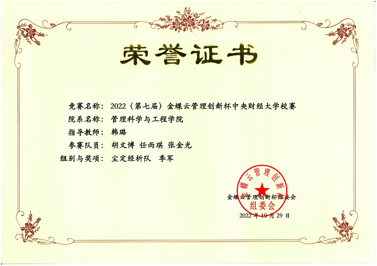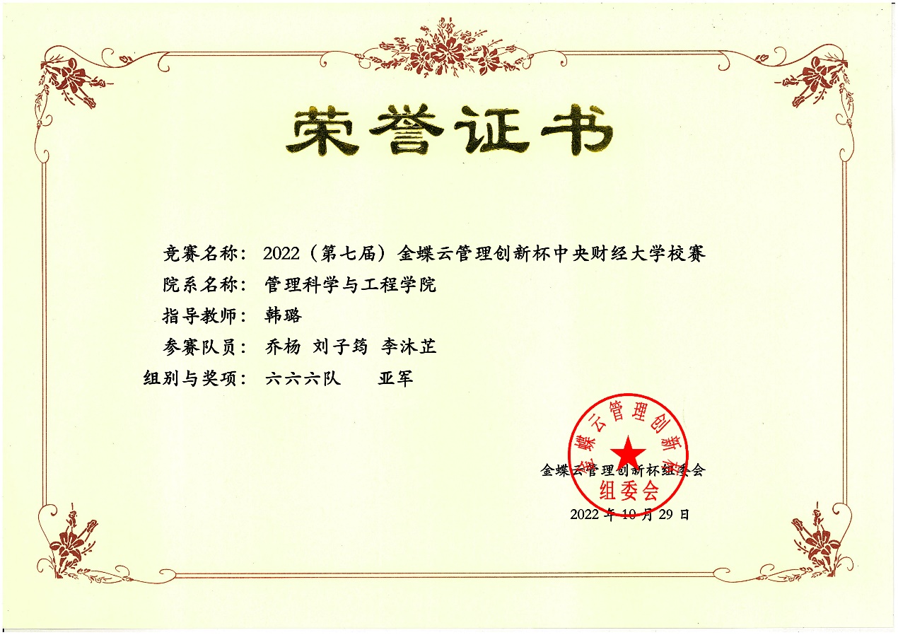 2022年10月29日上午9:00至12:00,“第七届金蝶云管理创新杯大赛”HAHA体育校赛(以下简称校赛)成功举办。公司管理科学2020级本科生刘柏江、周钰、赵一舟以团队97分的评分摘得桂冠,管理科学2020级本科生乔杨、刘子筠、会计2021级本科生李沐芷以团队92分的评分获得亚军,管理科学2020级本科生胡文博、任雨琪、张金光以团队91.5分的评分获得季军,三支队伍代表公司成功晋级区域赛。