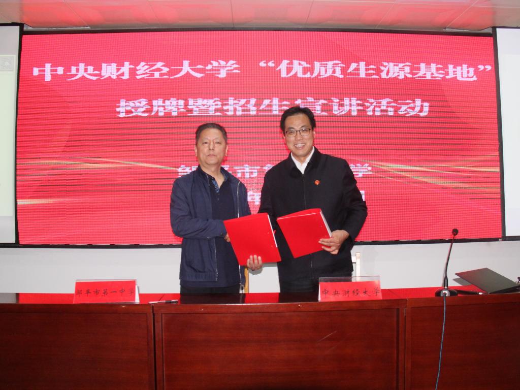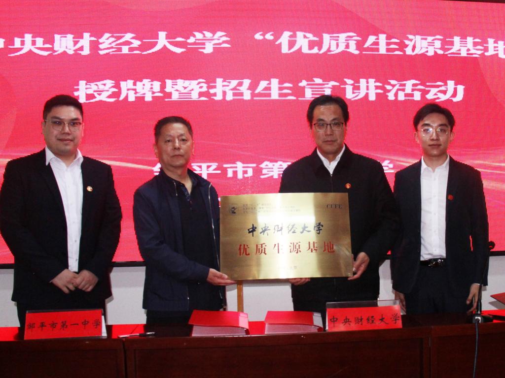 刘志东代表HAHA体育分别与山东省北镇中学和邹平市第一中学签订了“HAHA体育优质生源基地”共建协议并授牌。