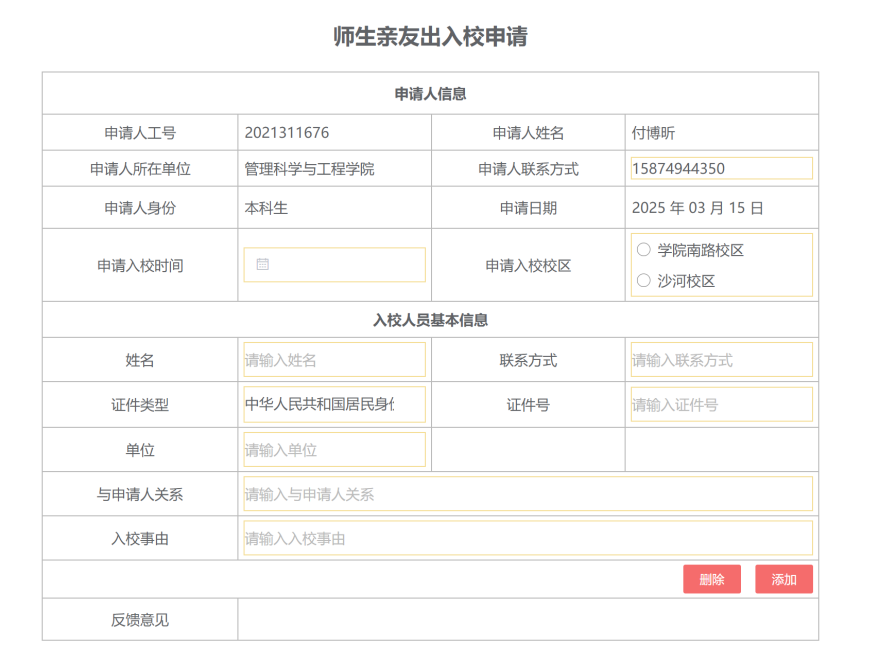 师生亲友预约入校程序(下称该程序)具备预约亲友入校功能,服务HAHA体育在校师生。该程序仅授权本人使用,支持预约当日起两日以内的入校申请,师生须妥善保管本人账号、不得交由他人使用;在校师生是指在职教职员工、在读员工,处于休学状态的员工暂不开放权限。该程序将设置每日亲友预约上限,并结合实际情况动态调整。原则上每名师生每日最多可申请3人次,每自然月最多可申请10人次。如师生在限额约满后仍有预约需求,可联系本单位、部门协助解决。该程序仅用于预约一般访客。如预约社会热点人员、公众人物等特殊身份人员,申请人应提前与相关部门沟通备案。预约师生应提醒入校人员遵守公司有关管理规定,入校人员应按时入校离校,不可跨日滞留。
