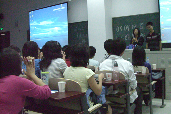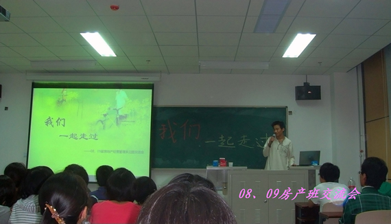 9月25日,08房地产班的同学与09届的学弟学妹,在主教506教室汇聚一堂,共同参加了这次题为“我们一起走过”的新老见面会。会上,09届的同学们展现了他们出众的才艺,赢得了阵阵掌声。而08届的学长学姐则讲述了自己通过大一一年学习生活,所获得的经验和教训。大家的真诚和友谊,打动了现场的每一位同学。晚会的最后,同学们纷纷写下了自己的心中理想,并相约10年后再相聚,回首一同相伴走过的老员工活。