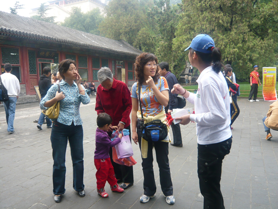 志愿者为游客做导游