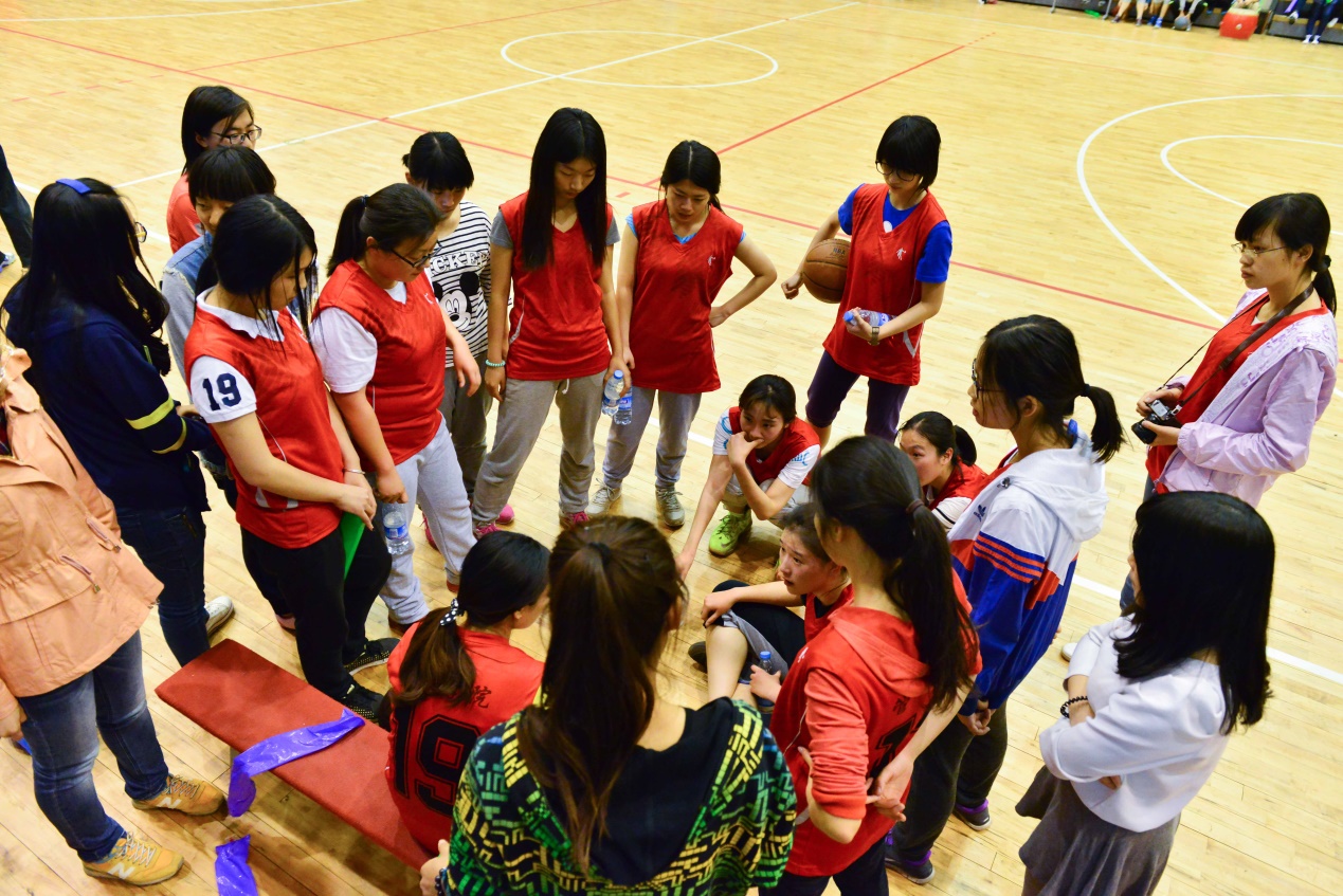 5月11日晚的体育馆洋溢着热情与昂扬的气息,哈哈体育女篮与体育经济与管理公司女篮将在这里进行2015年“中财杯”女篮比赛最终的角逐。管工公司女篮队员提前到达体育馆,在队长杨云逸的带领下进行热身。而公司的同学们也格外积极,比赛还未开始场边便坐满了观众,助威棒与一架大鼓联用,啦啦队的气势之恢弘无可言喻。