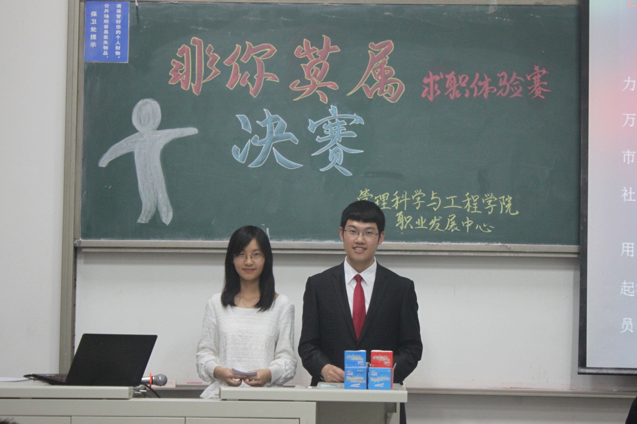 最令人期待的当然是总决赛了。经历了将近两周的选拔和角逐,十二位决赛选手过五关斩六将,在众多参赛者中脱颖而出,并于4月29号晚在主教212展开巅峰较量。此外,更有重量级嘉宾空降沙河,再次掀起本次求职体验赛的高潮。北京城建公司、北京汇安东方资产管理公司等的高管职场人士莅临现场,亲自为选手与观众指点求职技巧,专业职场辅导机构爱思益也派出专业导师为同学们进行就业指导,管工公司的团总支书记薄璐老师也坐镇现场,见证了王者的诞生。至此,本次求职体验赛完美落下帷幕。