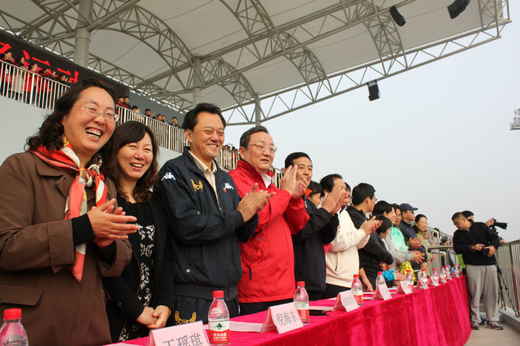 最后一项是校领导与师生代表共同领跑。在公司党委书记胡树祥、董事长王广谦的带领下,校领导们环绕操场慢跑,向同学们挥手致意。所到之处,欢呼声、尖叫声不曾停歇。正是这些可敬可亲的领导老师们,用行动冲破隔阂,用微笑为中财学子鼓劲加油。