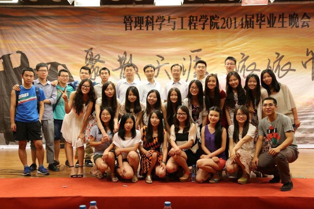 曾经作为主力阵容连续两年问鼎“中财杯”篮球赛冠军的10级的篮球队队员在临别之际对篮球队的寄语,和篮球队视频里的热血激情的比赛画面,让我们重温了那段管工“王朝模式”下激动又感动的时刻。管科10的同学们精心准备的合唱——《时间都去哪了》,让全场观众情不自禁地回忆着一路走来的点点滴滴,他们还将亲手缝制的十字绣牌匾“桃李满天下,师恩似海深”送给了培养他们四年的管理科学系。“今千里,酒一杯,声声喋喋催。问君此去几时还,来时莫徘徊。天之涯,地之角,知交半零落。一壶浊洒尽余欢,今宵别梦寒”,最后,晚会在院员工艺术团的合唱《送别》和《再回首》中落下帷幕。