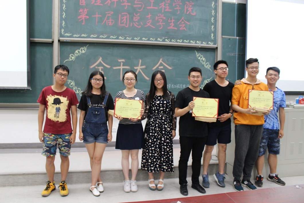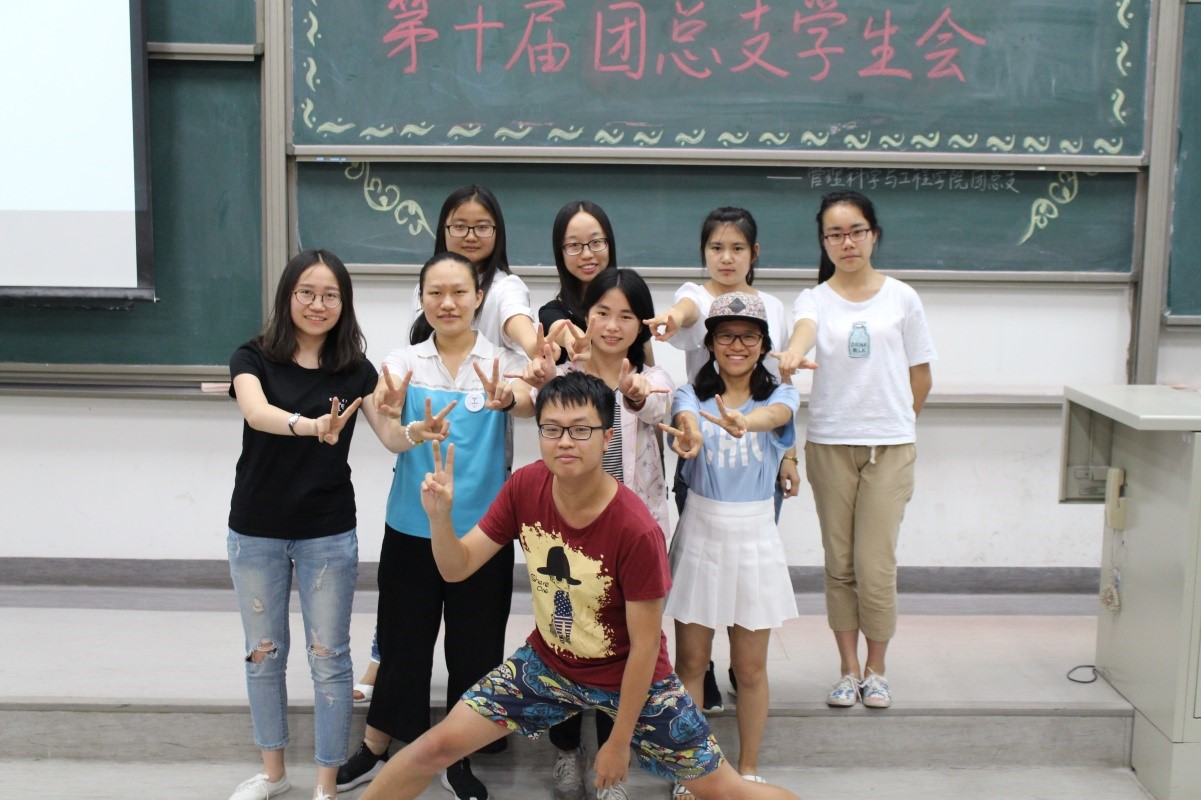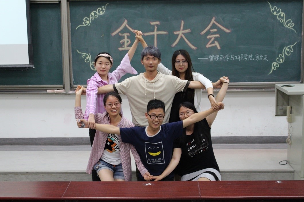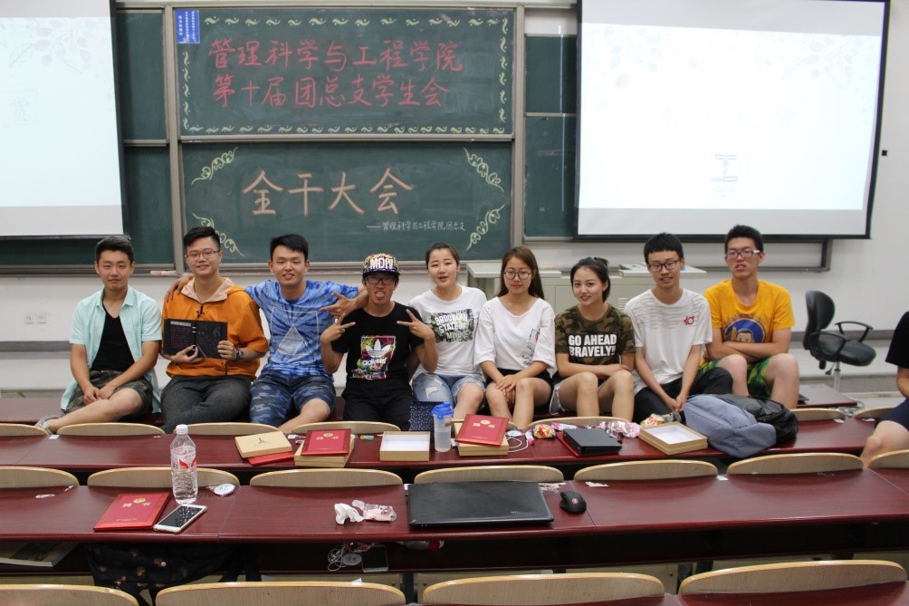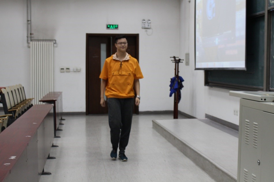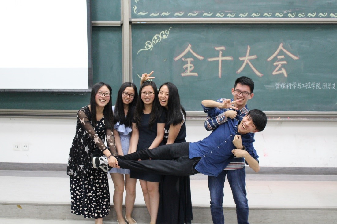 在主持人马铁力风趣幽默的开场过后,第十届主席团代表戴子钧上台发言。他首先提出了一个问题:假如给你一台时光机,让你回到一年前刚刚加入管工员工会的时候,你会做什么——搁下这个问题后,戴子钧展示了一些一年前刚刚进入大学,进入员工会的曾经的“小鲜肉”们当时稚嫩却朴实的感言以及来自学长学姐们的寄语。而后,他又以青协及体育部分管主席的身份对这两个部门的部长干事们传达了自己的叮嘱。说起这一年来在主席团的任职经历,戴子钧感慨万千,值此新老交替的换届之时,他将自己曾经的部长送给自己的“员工会三句诗”送给了台下将继续为了管工员工会奋战下去的各位学弟学妹——