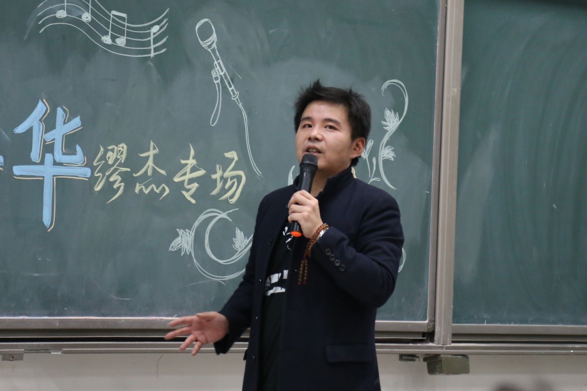 说过分享后,专场讲座进入正题,缪杰老师从他童年时代的梦想开始,一路讲述他最终加入水木年华前的二十余年的心路历程。缪杰老师谈起他年少时的梦想总是会随着境遇和周遭人的看法改变,在印度电影中看到擦皮鞋的人很酷,就想擦皮鞋;在大街上看到开公交的人很酷,就想开公交;直到最后因为父母亲戚的意愿而希望成为科学家——这样一个多数孩子小时都有过的梦想。在讲述这段故事时,缪杰老师的语言风趣幽默,引得在场的各位同学连连发笑。