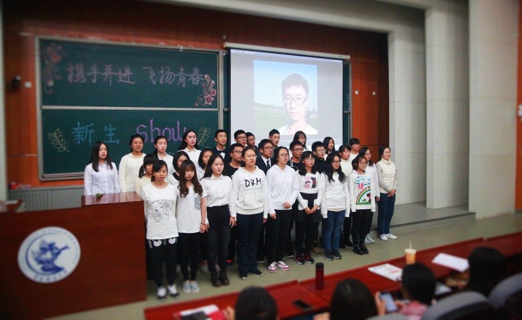 多年之后,不知你是否还能记起当年与我同桌的你?管科16的同学们用明亮的歌声将故事娓娓道来。如彩虹般绚烂的“管”字班徽,由全体同学名字组成的班旗,无一不显示了管科特色。