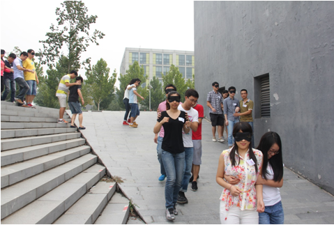 最后,信任之旅。信任是一种温暖而坚定的力量,而建立信任也是需要技巧和窍门。盲人的路上离不开拐杖,就像我们成长的道路上也离不开同学的陪伴。每个“拐杖”都揣着一份沉甸甸的责任,每个“盲人”也在渐渐的多了一份感激和信任。