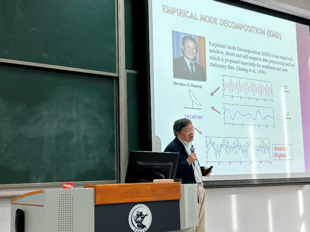 随后,汪寿阳院士开展了名师讲堂第一期讲座——《未来领袖的摇篮:许国志大数据英才班》,讲座由刘志东教授主持。汪寿阳院士娓娓道来,讲述了他的其中一位员工在研究生期间做出了世界一流的工作的故事。他从特征提取方法在经济分析中的应用谈起,首先介绍了经验模态分解(EMD)方法,然后讲述了他的员工利用EMD分解机制解决了困扰能源经济学四十年的两个公开问题。他表示,无论是本科生还是研究生都可以做出世界一流、举世闻名的工作,鼓励许国志大数据英才班的员工积极实践、勇于探索。最后,汪寿阳院士希望员工能够珍惜在许国志大数据英才班的学习机会,用知识武装自己,努力学好人工智能、计算机相关的课程,并且能够用大数据方法解决世界上尚未解决的难题,做出创新性的成就。