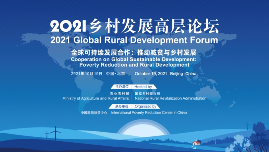 2021乡村发展高层论坛于2021年10月19日在北京召开。中共中央政治局委员、国务院副总理胡春华出席论坛开幕式并致辞。乌兹别克斯坦副总理贾姆希德·库奇卡罗夫、联合国粮农组织总干事屈冬玉、东盟秘书长林玉辉等应邀致辞。农业农村副部长刘焕鑫主持开幕式。来自多个国家的部级官员、11个国际组织的相关负责人、驻华使馆代表、中国政府有关部门负责同志、相关专家学者以及企业、社会组织和基层代表参与此次论坛。本次论坛以“全球可持续发展合作:推动减贫与乡村发展”为主题,旨在加强减贫经验交流共享,深化乡村发展国际合作。论坛就新冠疫情对贫困的影响、食物转型等议题展开讨论。