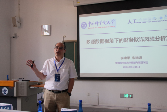 李建平教授以“多源数据视角下的财务欺诈风险分析”为题,从案例出发,生动地介绍了财务欺诈研究的理论价值和现实意义;从数据与方法的演进角度,详细阐述了人工智能环境下风险欺诈研究的变化;介绍了利用人工智能技术在财务欺诈识别领域的两项前沿研究,为参会师生提供指导。