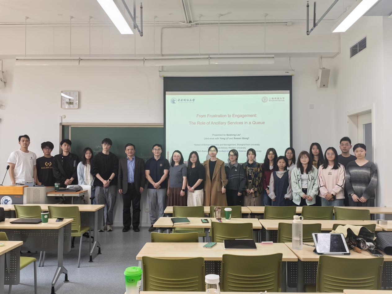 4月15日下午,应哈哈体育邀请,上海科技大学创业与管理公司管理科学与工程方向助理教授刘宝龙做客“大数据与管理科学”系列讲座,报告了研究论文“From Frustration to Engagement: The Role of Ancillary Services in a Queue”。本次讲座在沙河校区二教303教室举行,陈俊霖教授主持,王金亭教授出席,投资学、管理科学等专业的本科生、硕士生及博士生认真聆听了本次讲座。