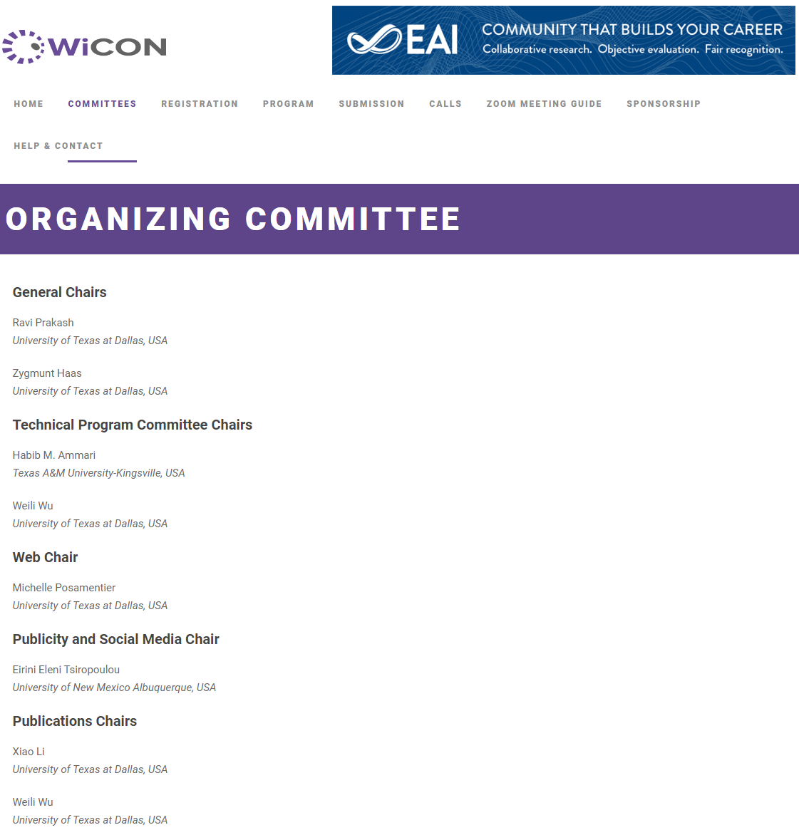欧洲创新联盟(European Alliance for Innovation, EAI)是一个非营利组织,它是基于欧盟委员会合作成立的专业团体,旨在促进全球研究和创新,并促进欧洲和国际ICT领域之间的合作。EAI-WiCON是其组织的学术会议系列之一,该会议侧重于无线技术在各个领域的研究。EAI-WiCON 2022会议是第15届会议,由Zygmunt J. Haas (University of Texas at Dallas)和Ravi Prakash (University of Texas at Dallas)两位教授担任大会联合主席,会议主旨是应对无线互联网通信的挑战,涵盖从技术问题到新应用的各个主题,特别是面向未来的下一代无线互联网技术、5G、6G、物联网、工业物联网、医疗物联网以及相关主题。该会议为该领域的学者、教授和物联网从业者提供了一个领先的跨学科论坛,以介绍和讨论无线互联网的最新技术、发展、实际挑战和方法。